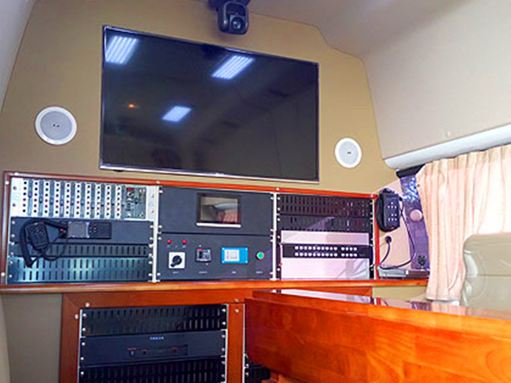 8、电源系统:系统由车载交流发电机、外接市电、逆变电源组成,为车载设备提供可靠的AC220V交流及12V直流电源。